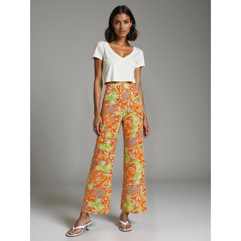 Tropical Floral Pull On Pants ORANGE – ORANGE