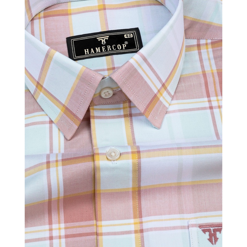 Turin Peach With Yellow Twill Check Cotton Shirt