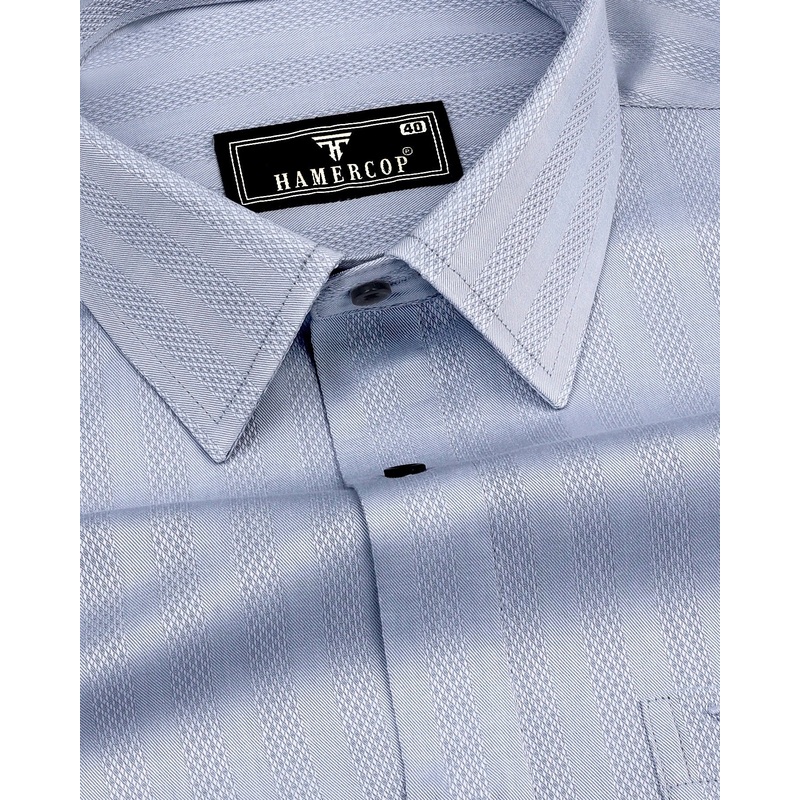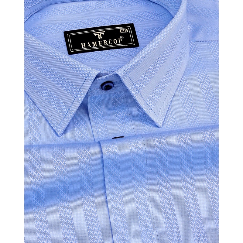 Tumen Blue Twill Stripe Dobby Cotton Shirt