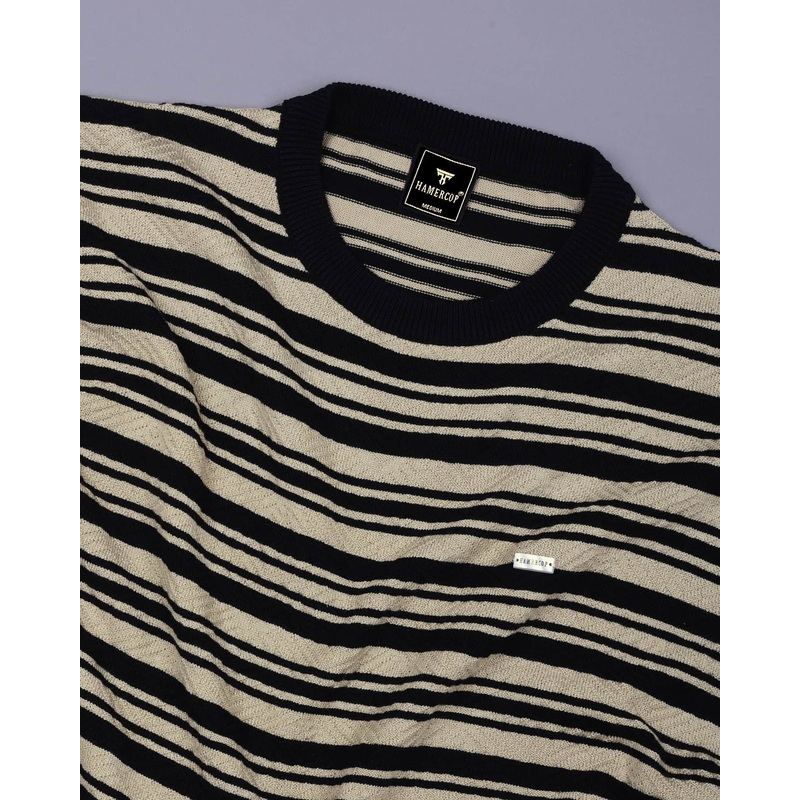 Tuzon Black Stripe Knitted Cotton T-Shirt