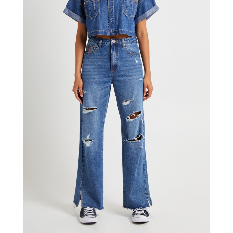 True Straight Leg Mid Waist Denim Billie Jeans DNM