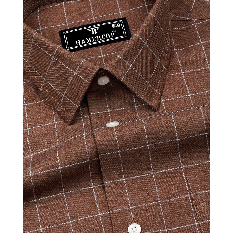Visconti Brown With Gray Check Dobby Cotton Shirt