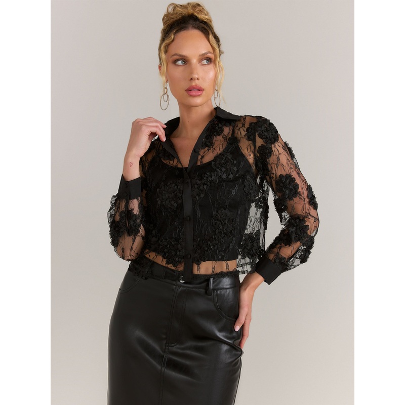 Vine Tree Sheer 3D Lace Button Down Top – Brands We Love BLACK – BLACK