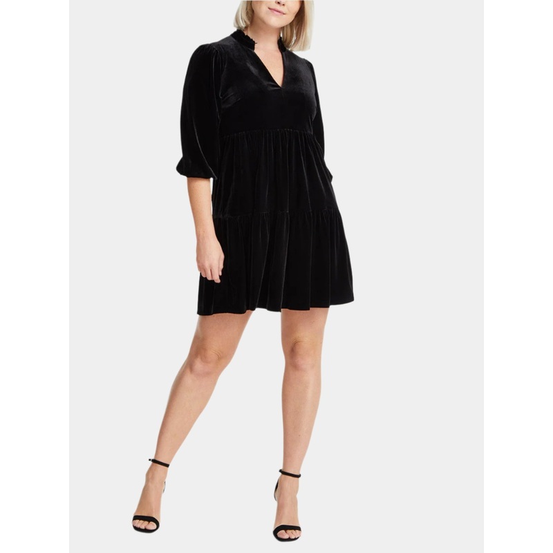 Velvet Tiered Trapeze Dress BLACK – BLACK