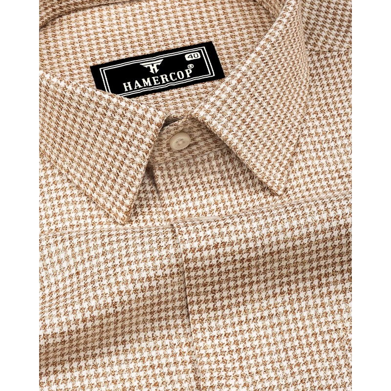 Beige Cream Houndstooth Dobby Cotton Formal Shirt