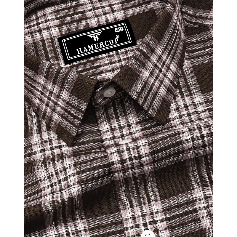 Belica Brown With White Check Linen Cotton Formal Shirt