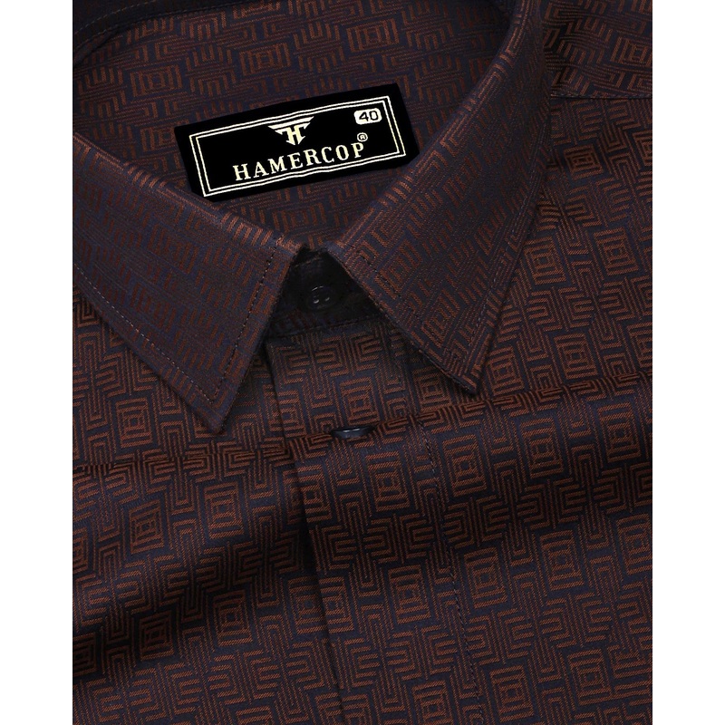 Bela Choco Brown Jacquard Textured Cotton Shirt