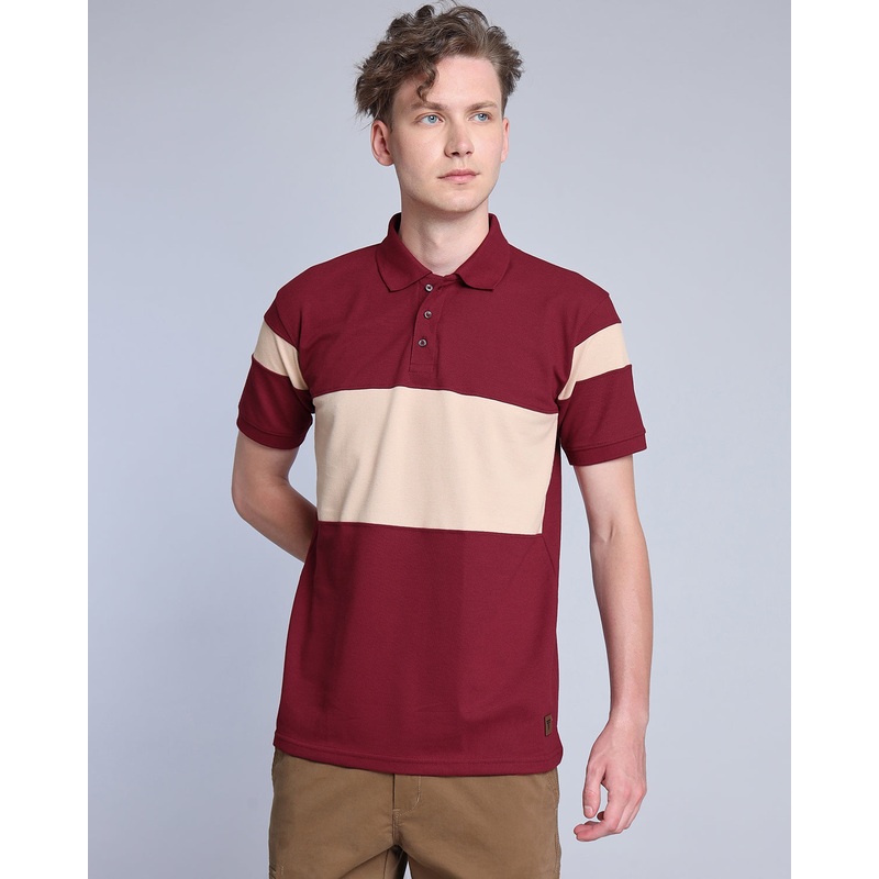 Beat Maroon With Cream Pique Pima Designer T-Shirt