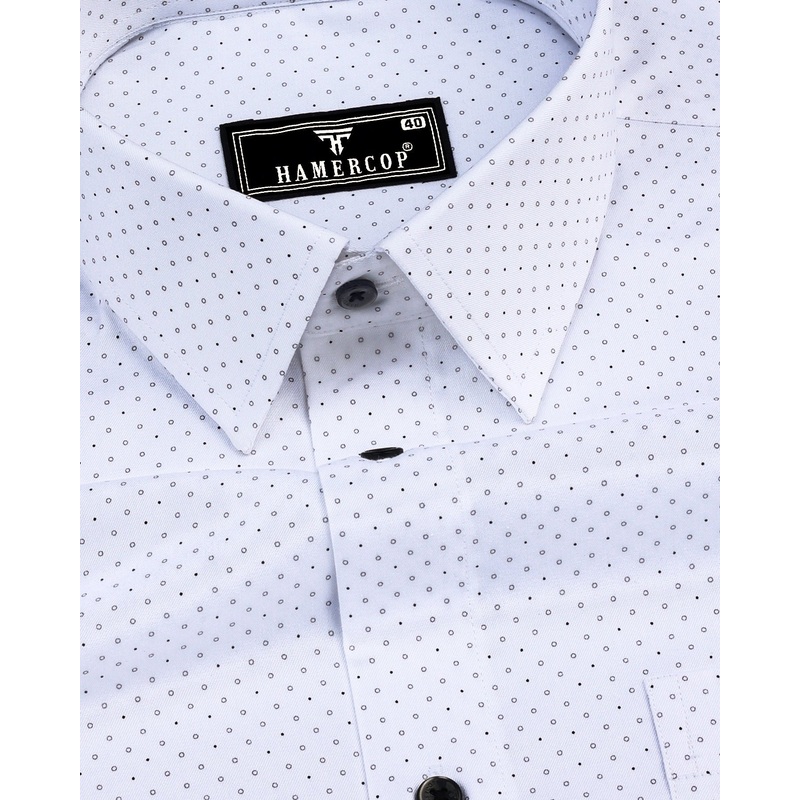 Wolf White With Gray Polka Dot Printed Cotton Shirt