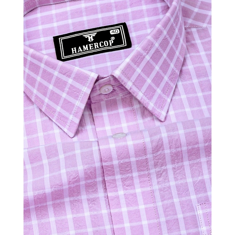 Yucca Light Purple With White Check Seersucker Cotton Shirt