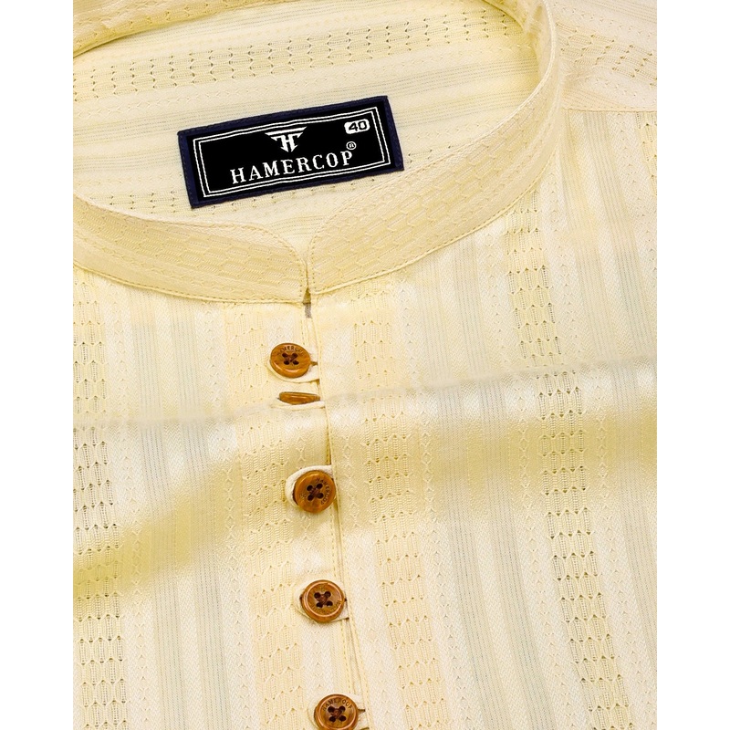 Zamora Yellow Self Stripe Dobby Cotton Shirt Style Kurta