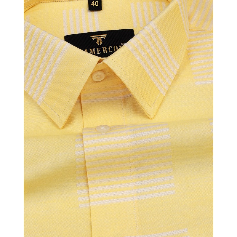 Yovel Yellow With Box Pattern Premium Cotton Shirt