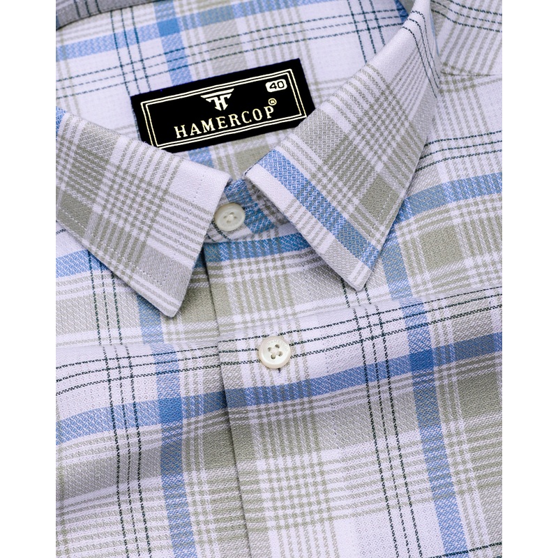 Yuxi Blue With Gray Check Dobby Cotton Formal Shirt
