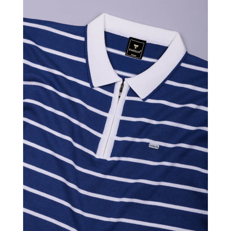 Yorkton Blue Stripe Knitted Cotton Zipper Polo T-Shirt