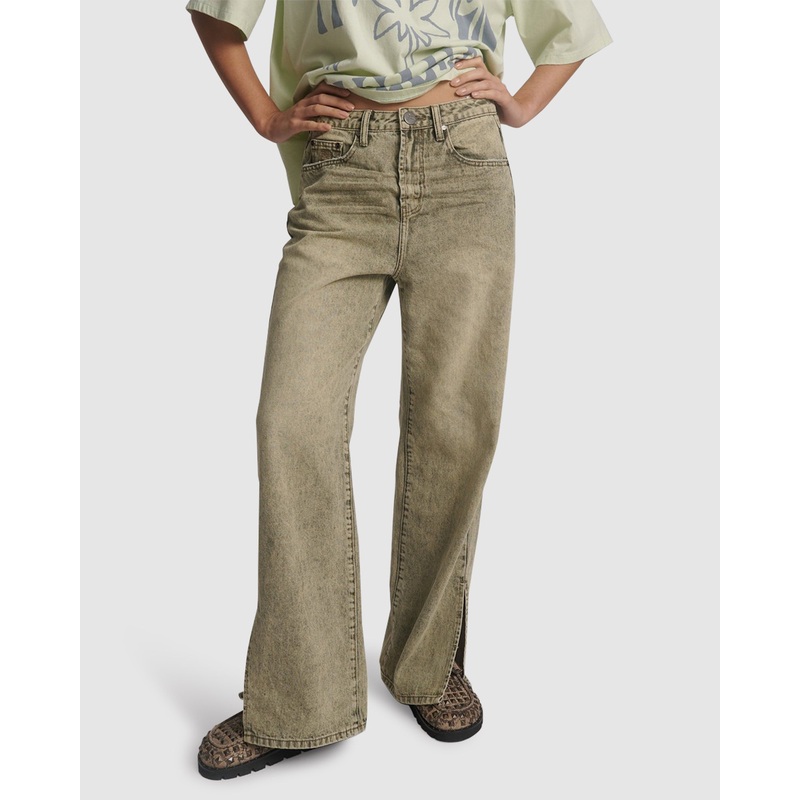 Billie Mid Waist Long Rise Straight Leg Denim Jeans GRN