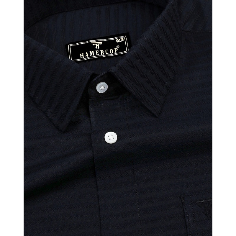 Black Self Weft Stripe Dobby Cotton Formal Shirt