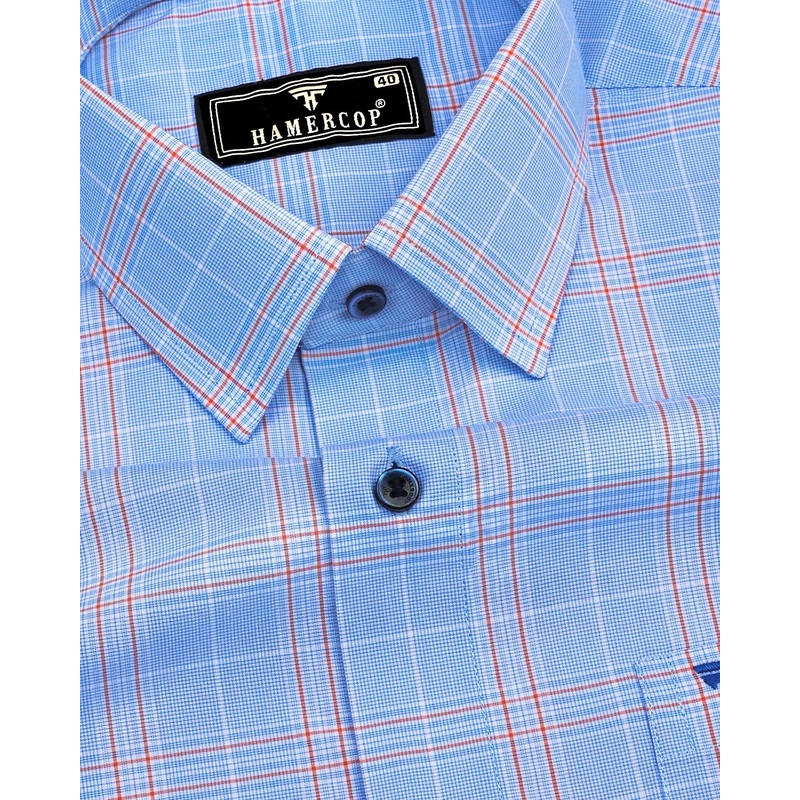 Bliss SkyBlue With Orange Micro Check Formal Cotton Shirt