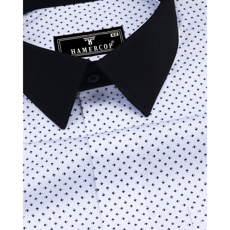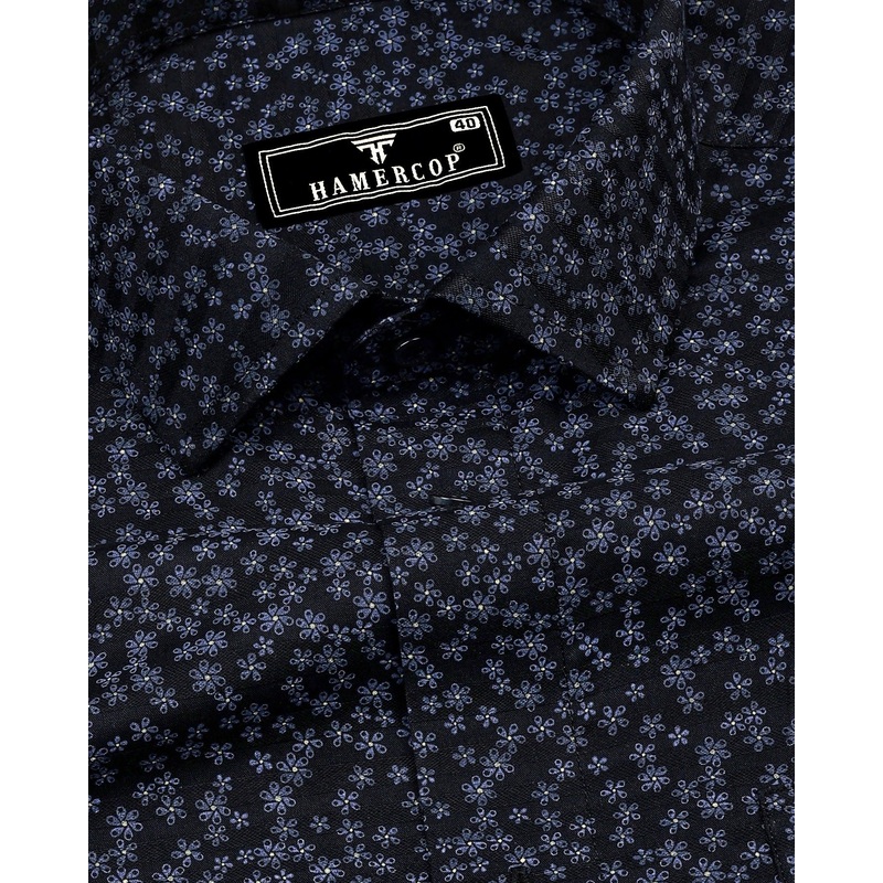Black Hibiscus Printed Self Weft Stripe Dobby Cotton Shirt