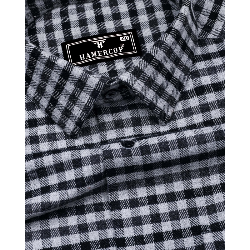 Black With Gray Plaid Flannel Brushed Check Cotton Shirt