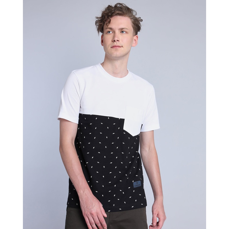 Black With White Lightning Bolt Printed Pique Pima Designer T-Shirt