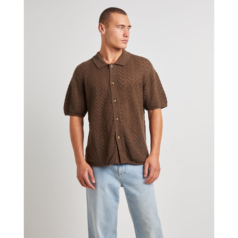 Blaxland Knit Short Sleeve Shirt in Brown BRN