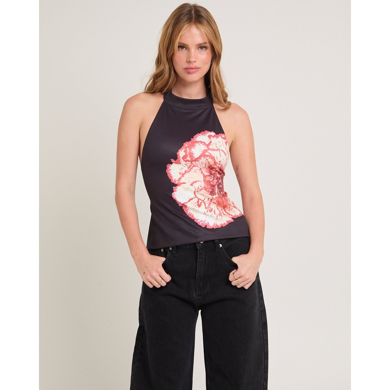 Blair Rosette Contrast Lace Overlay Cami Black BLK