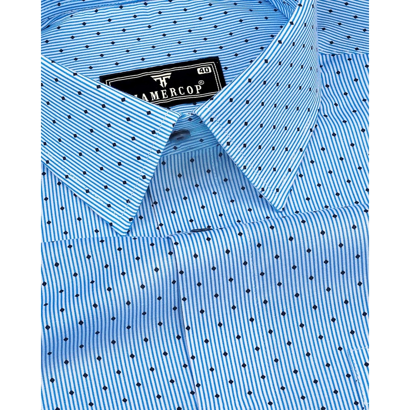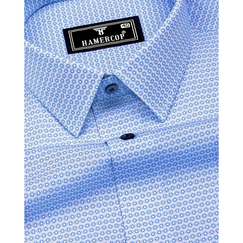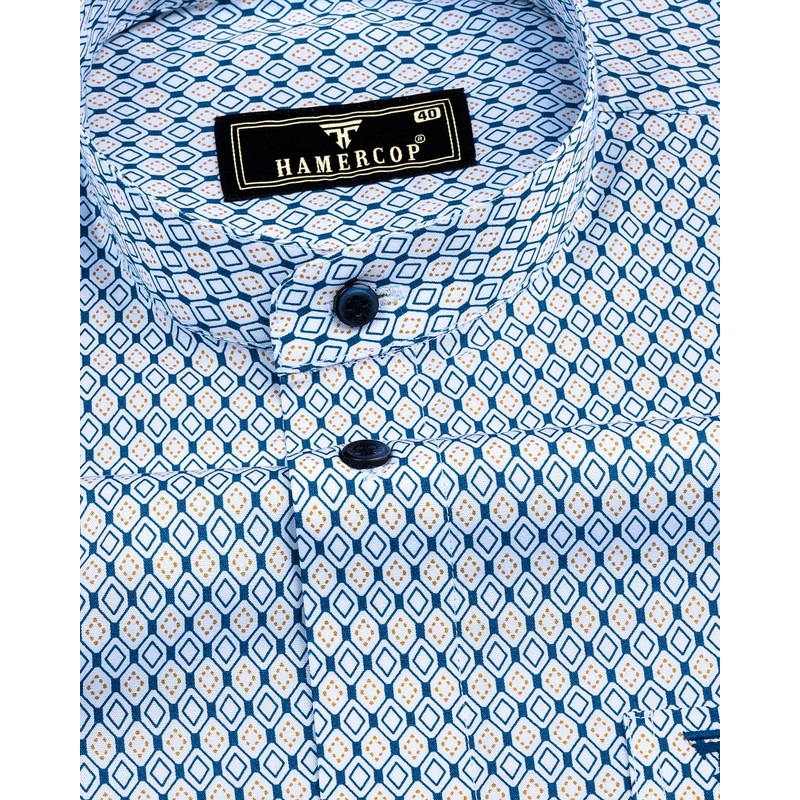Blue Hexagon With White Printed Formal Cotton Shirt