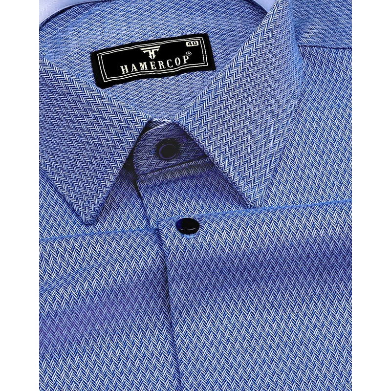 Blue With White Zigzag Textured Dobby Cotton Designer Shirt