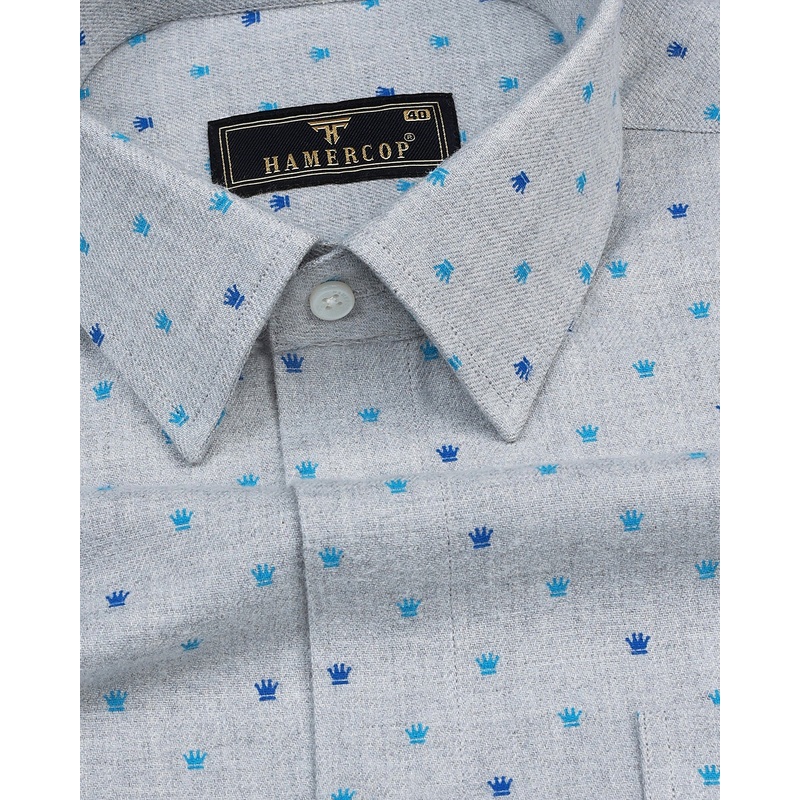 Blue Crown Printed Gray Color Plaid Flannel Cotton Shirt