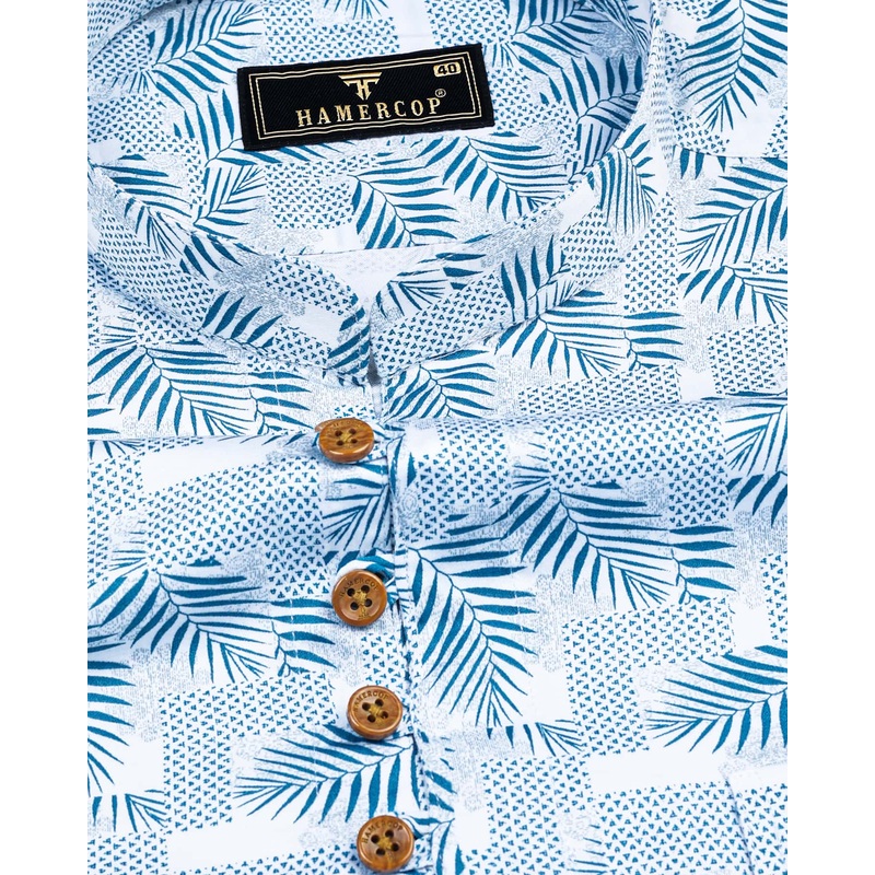 Blue Palm Leaf Printed Cotton Shirt Style Kurta