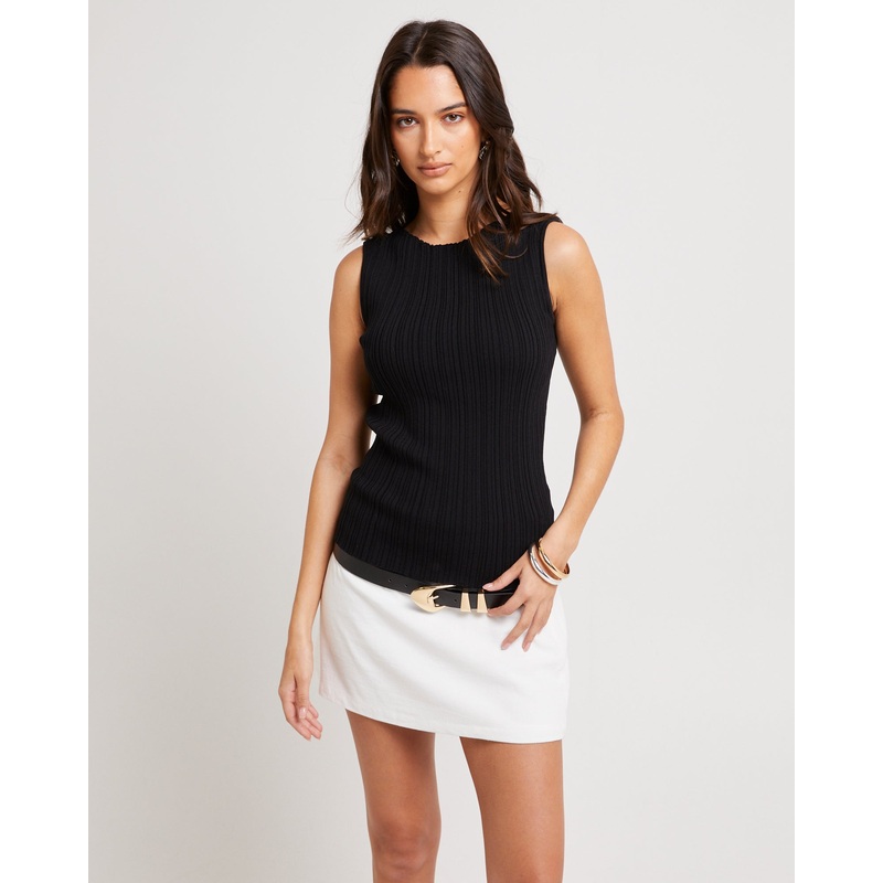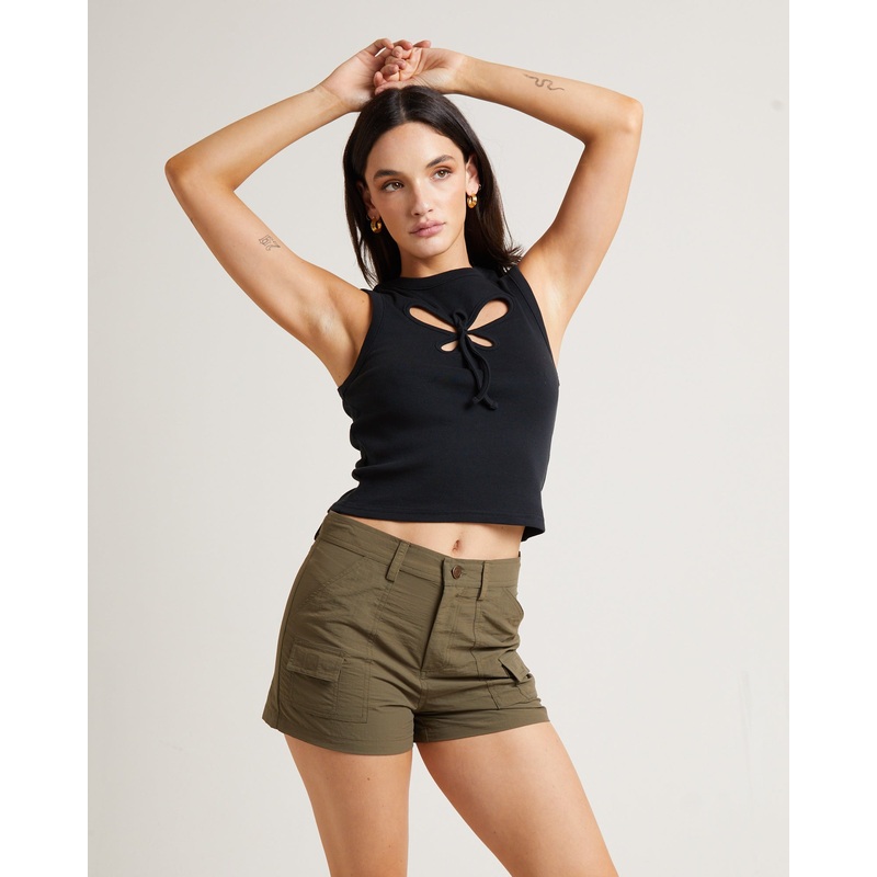 Blossom Cut Out Tank Top in Pitch Black BLK