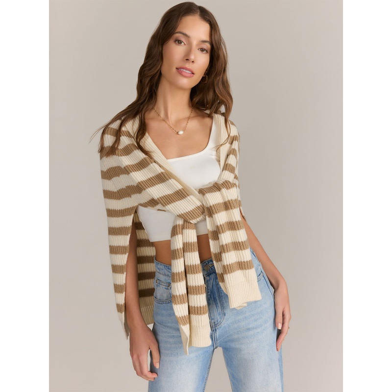 Bold Stripe Faux Draped Sweater Ruana NATURAL – CAMEL