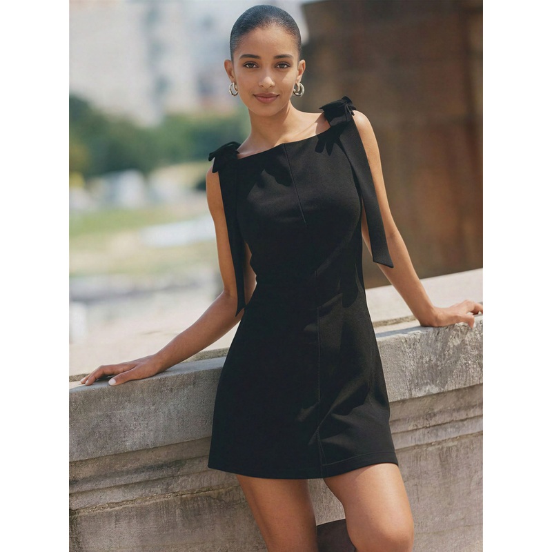 Bow Tie Shoulder Mini Dress BLACK – BLACK
