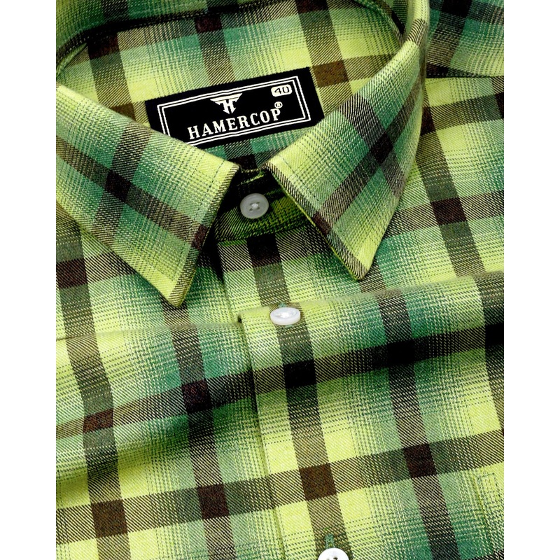 Bresso Green Plaid Flannel Twill Check Cotton Shirt