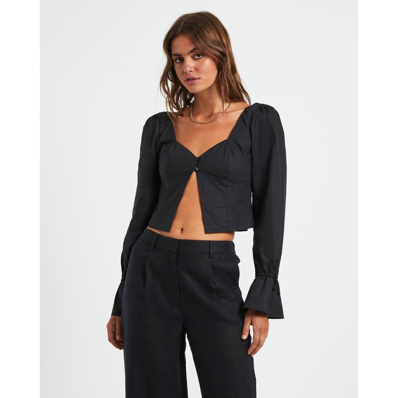 Bree Poplin Button Shirt in Black BLK