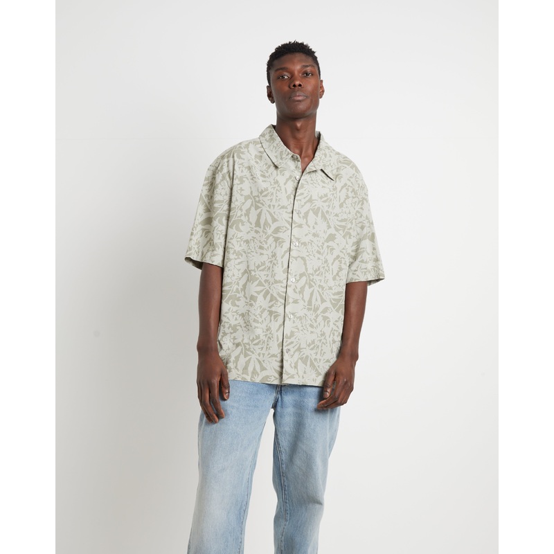 Bouquet Short Sleeve Shirt in Olive Floral Green GRN