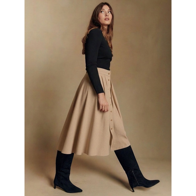 Circle Button Down Midi Skirt GREEN – OLIVE