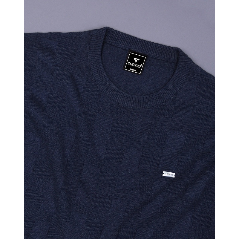 Aristo NavyBlue Knitted Melange Cotton T-Shirt