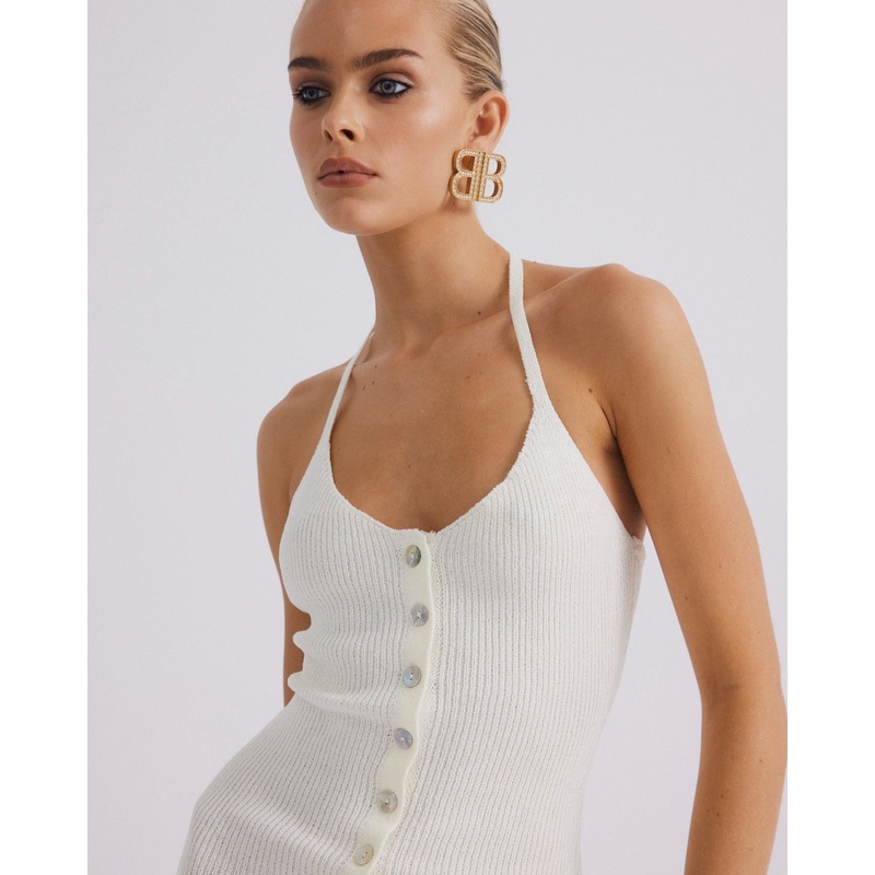 Aristo Ivory Cream Knitted Melange Cotton T-Shirt