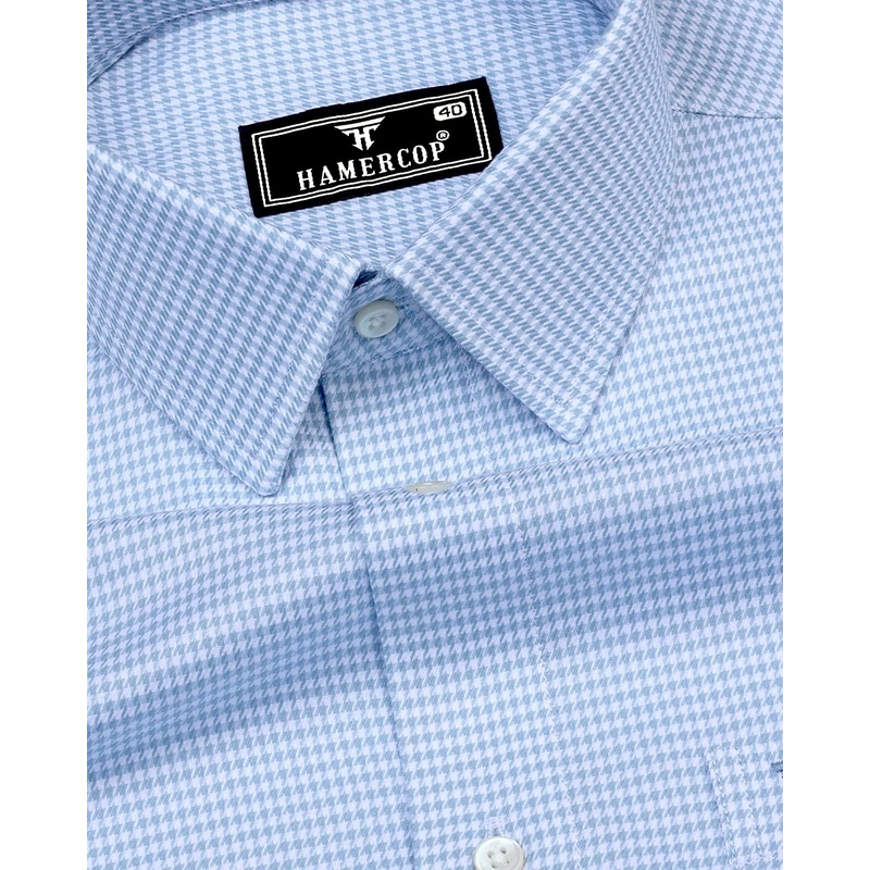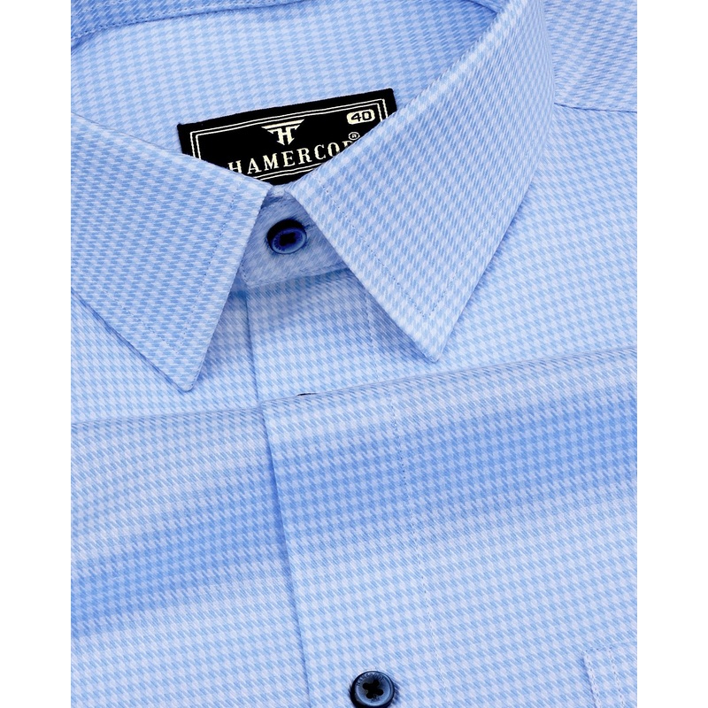 Ascona Babyblue Houndstooth Jacquard Premium Giza Shirt