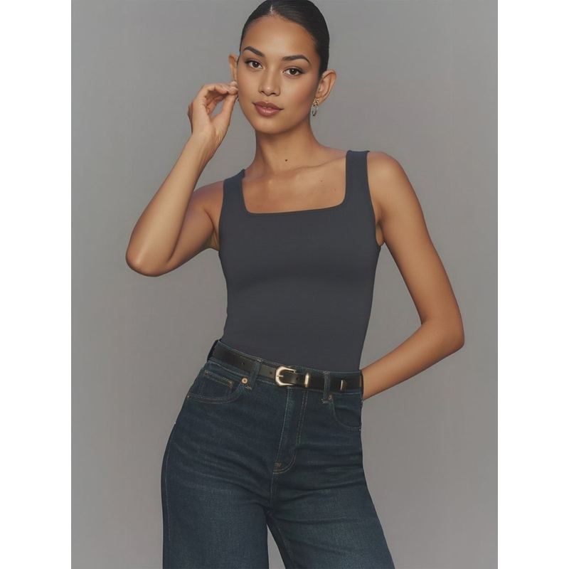 Sleeveless Buttersoft Square Neck Tank Top GREY – CHARCOAL