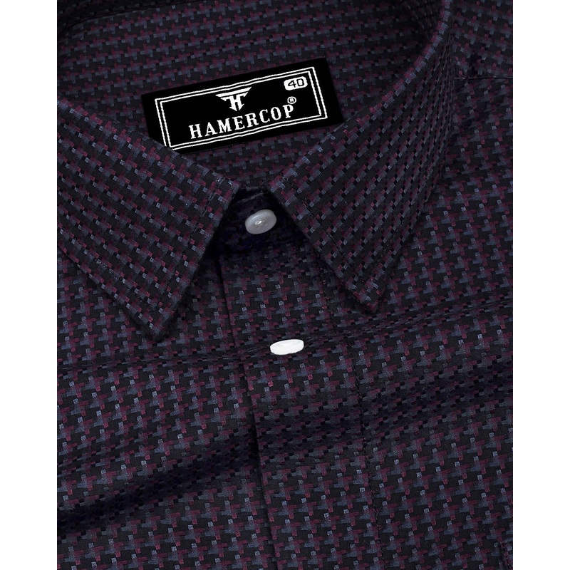 Skipton Maroon With Black Houndstooth Dobby Premium Giza Shirt