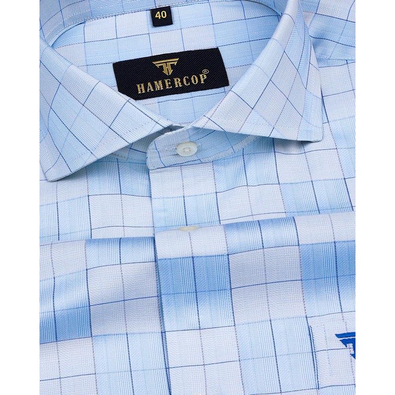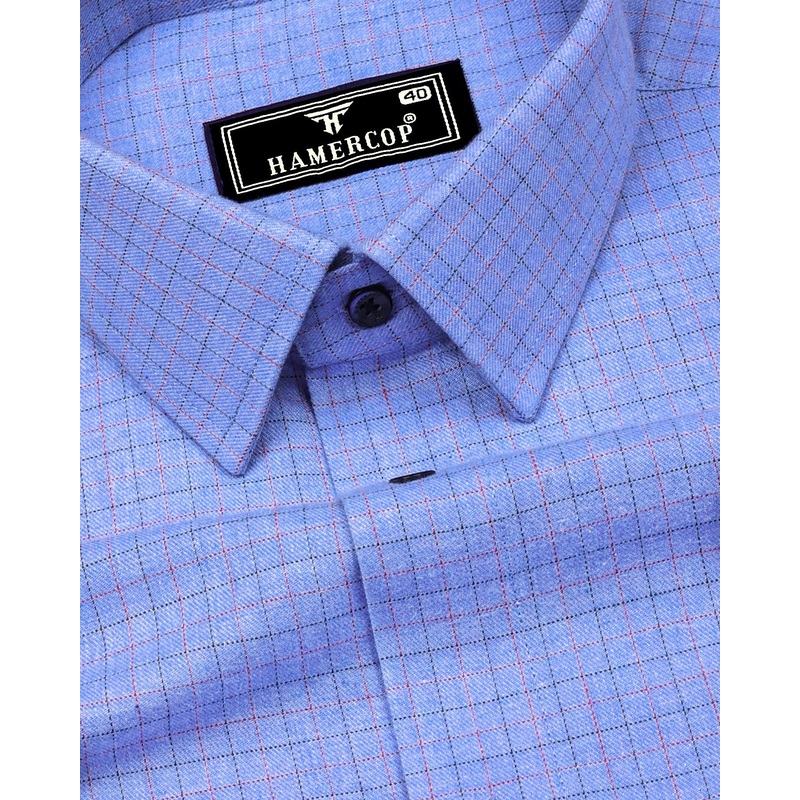 Skyland Blue With Gray Check Premium Gizza Cotton Shirt