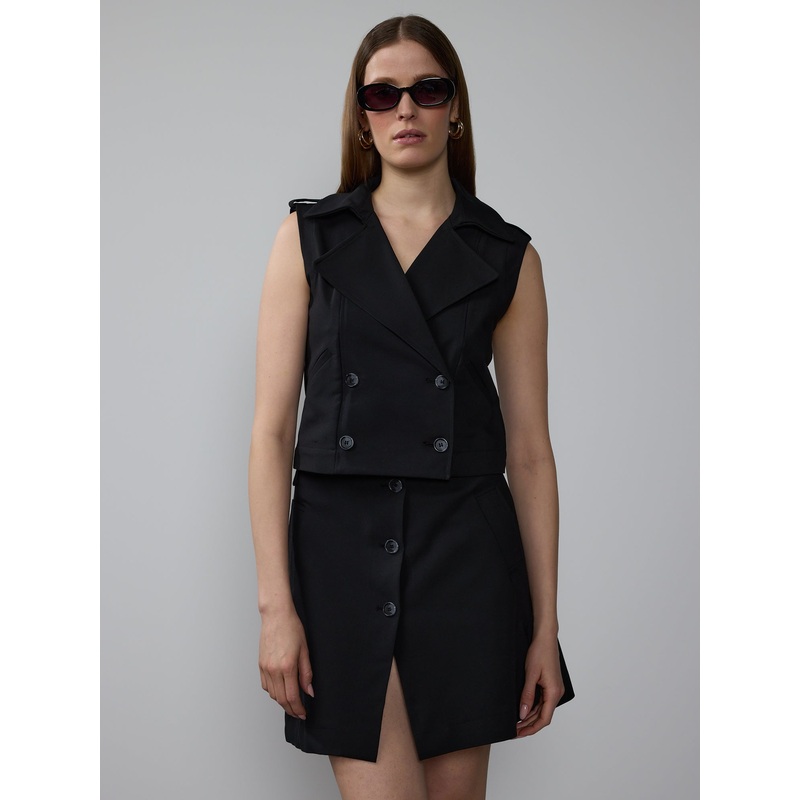 Sleeveless Double Breasted Trench Vest BLACK – BLACK