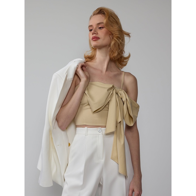 Sleeveless Stripe Bow Top NATURAL – LINEN
