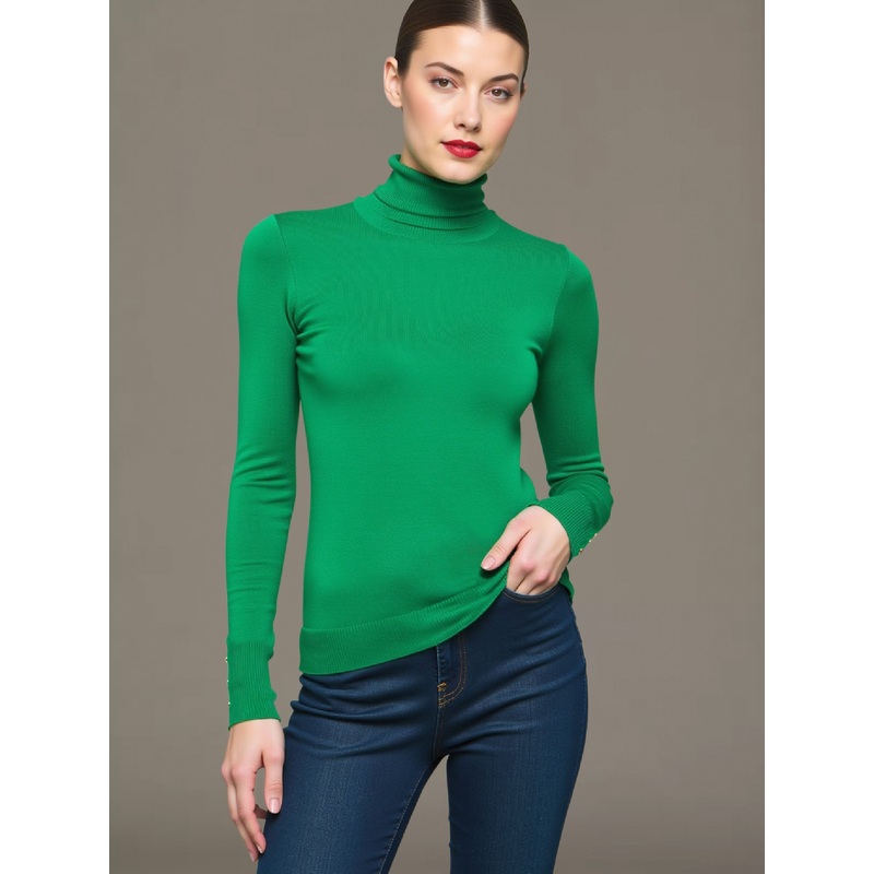 Sleeve Turtleneck Button Cuff Sweater BLUE – BLUE