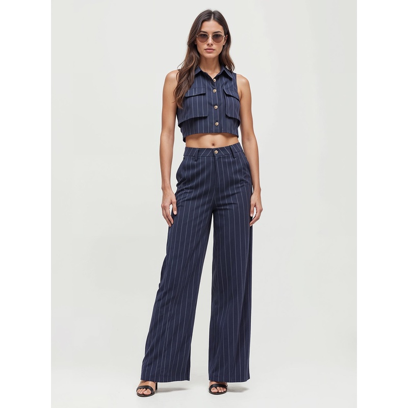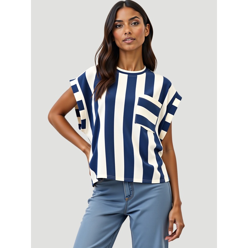 Striped 2 Pocket Button Down Top WHITE – WHITE