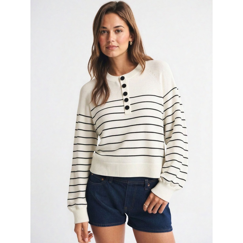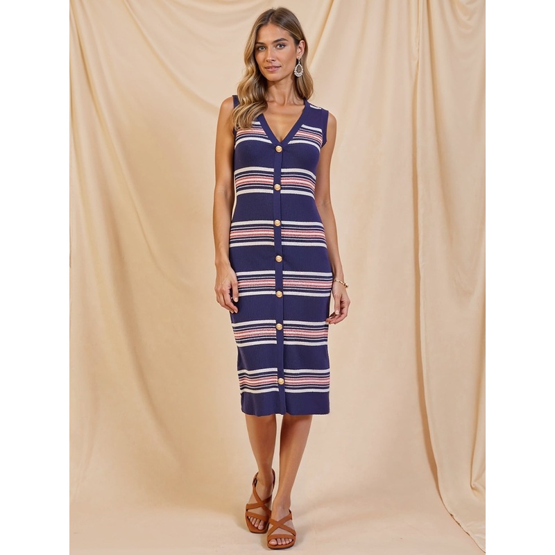 Striped Button Down Midi Knit Dress BLUE – NAVY