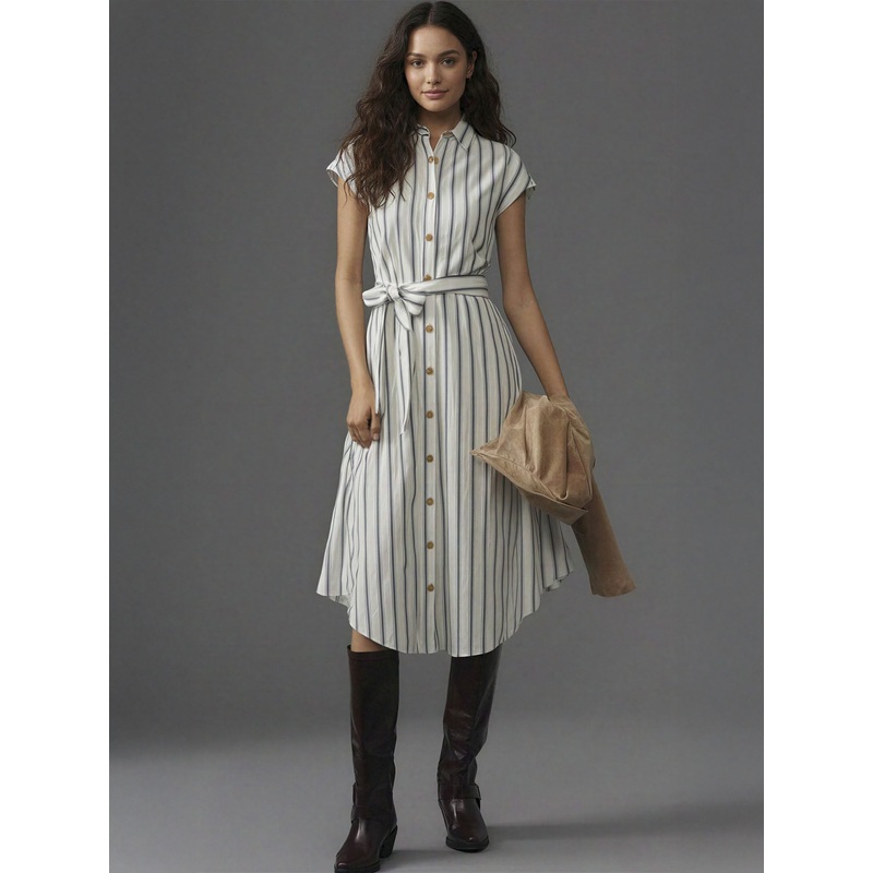 Stripe Tie Front Button Down Shirt Dress NATURAL – NATURAL