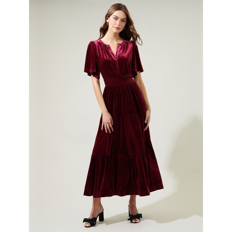 Sugarlips Velvet Tiered Midi Dress – Brands We Love PURPLE – TRUE BURGUNDY